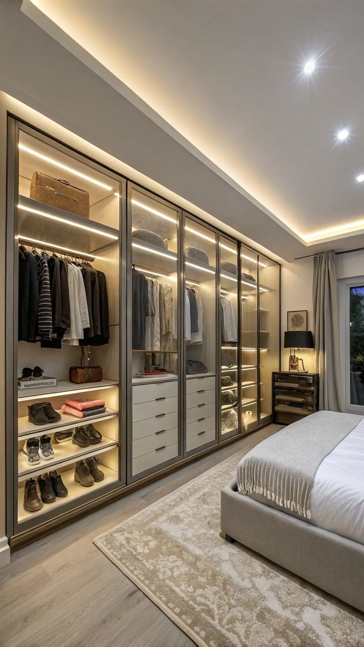 Systèmes d’éclairage LED avec détecteur de mouvement. Retrouvez vos tenues préférées en un clin d’œil, même dans la pénombre.