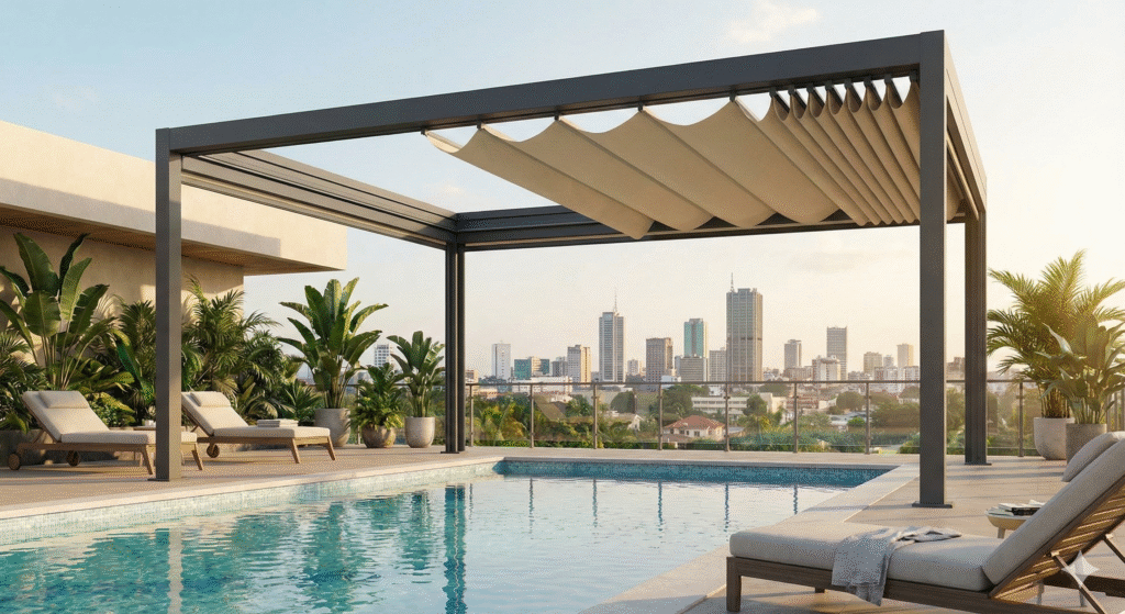Sublimez vos extérieurs avec nos Pergolas Bioclimatiques et inondez vos intérieurs de lumière naturelle grâce à nos Skydomes architecturaux.